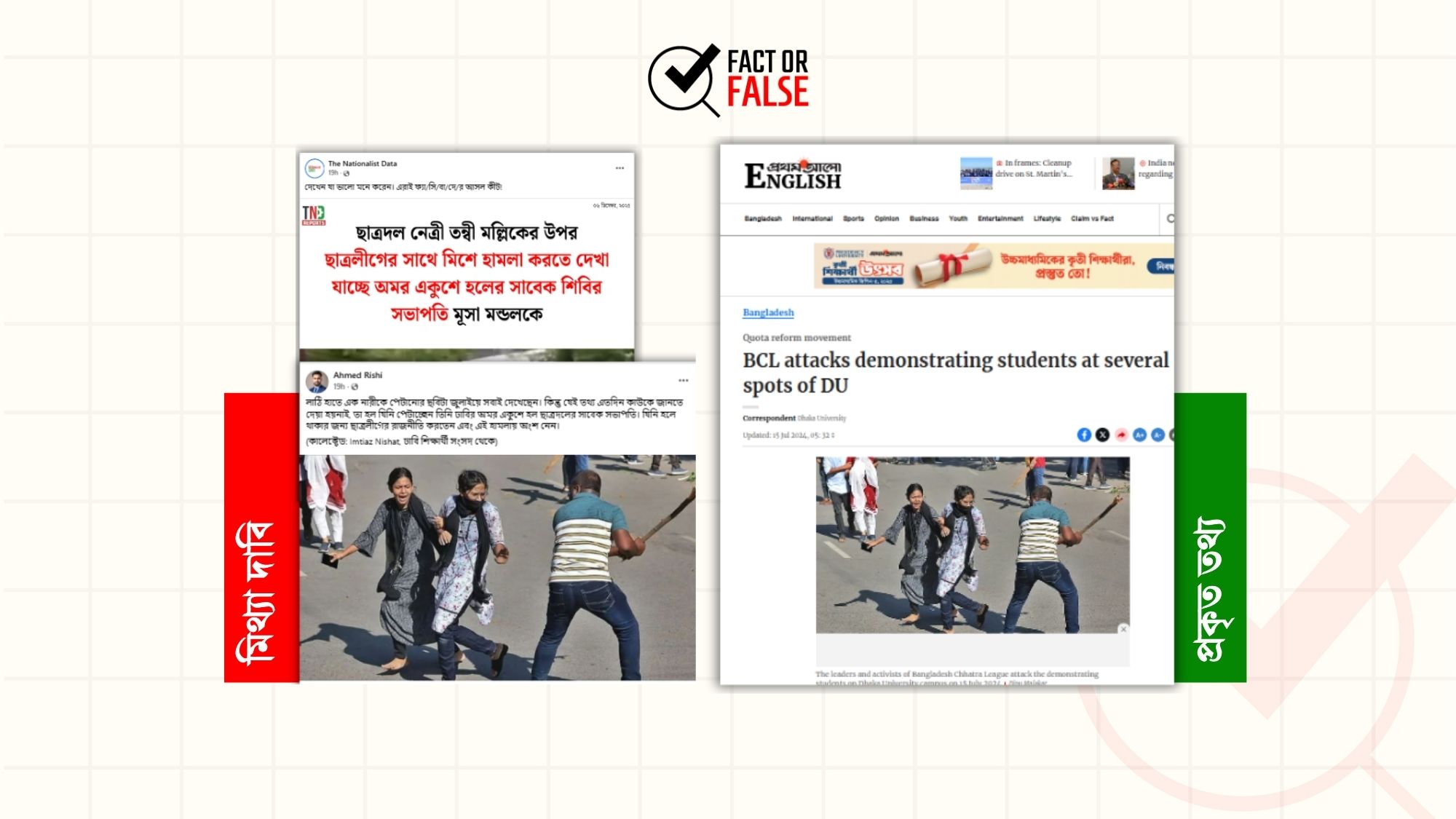 সম্প্রতি সামাজিক যোগাযোগ মাধ্যমে ২০২৪ এর জুলাই আন্দোলনে নারী শিক্ষার্থীদের লাঠি দিয়ে পেটানোর ছবি ও ভিডিও ভিন্ন দুইটি…