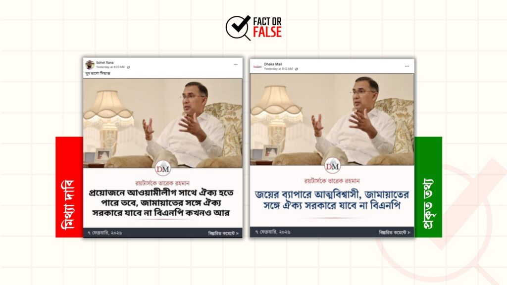সম্প্রতি, জামায়াতে ইসলামী বাংলাদেশের আমীর ডা. শফিকুর রহমানের ছবি সংযুক্ত করে ‘জামায়াত ক্ষমতায় আসলে নারী পুরুষের সমান অধিকার…