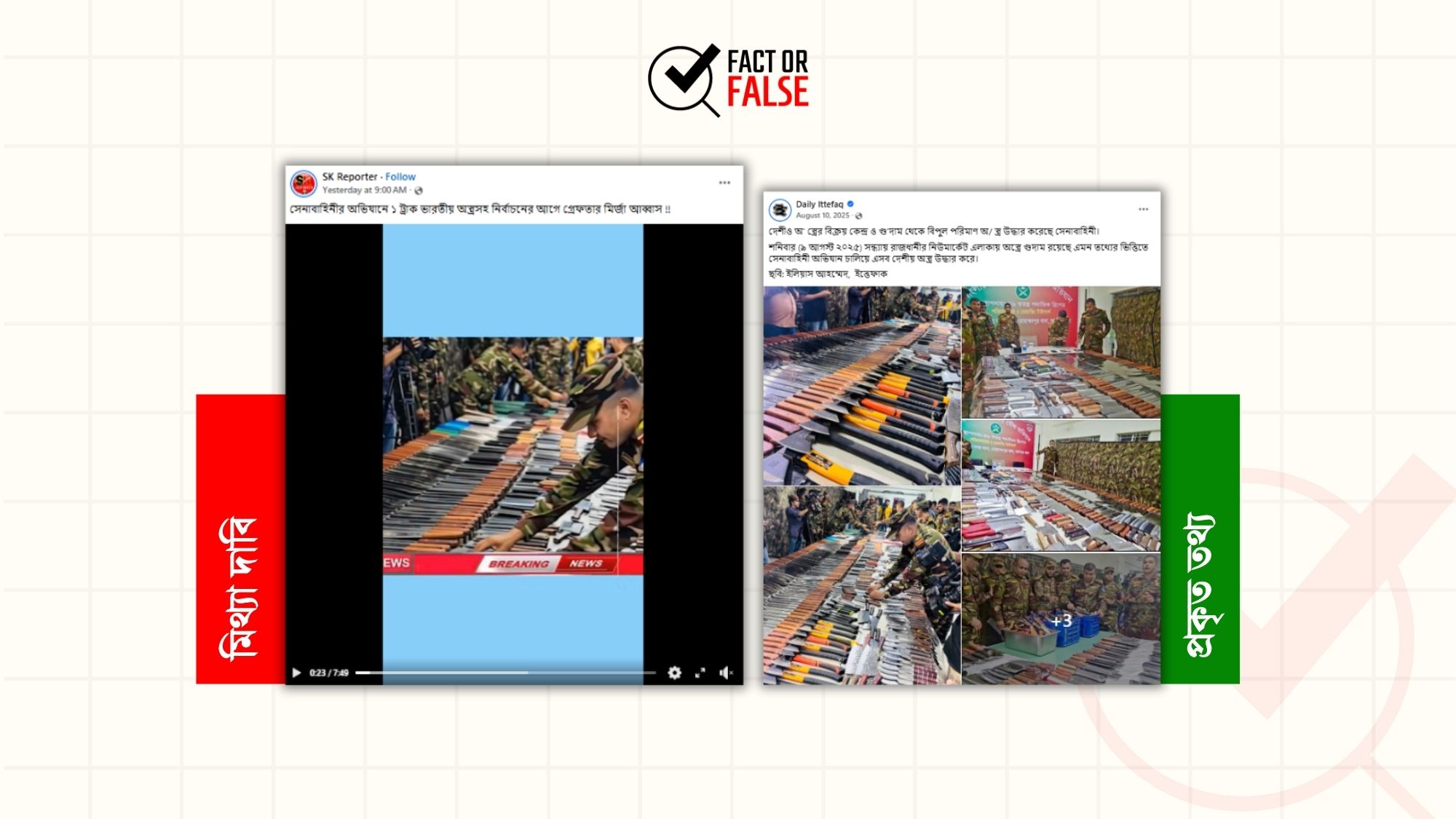 সম্প্রতি, “মোহাম্মদপুরে সেনাবাহিনীর অভিযানে দেশীয় অস্ত্রসহ ৫ শিবির কর্মী গ্রেফতার” শিরোনামে একাত্তর টেলিভিশনের ডিজাইনের আদলে তৈরি একটি ফটোকার্ড…