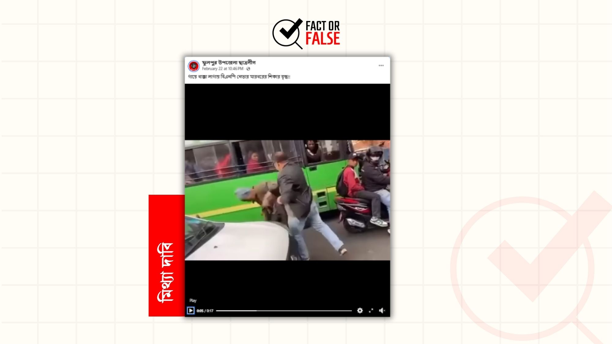 সম্প্রতি ‘গায়ে ধাক্কা লাগায় বিএনপি নেতার মারধরের শিকার বৃদ্ধ!!’ ক্যাপশনে একটি ভিডিও সামাজিক যোগাযোগ মাধ্যমে প্রচার করা হয়েছে৷…