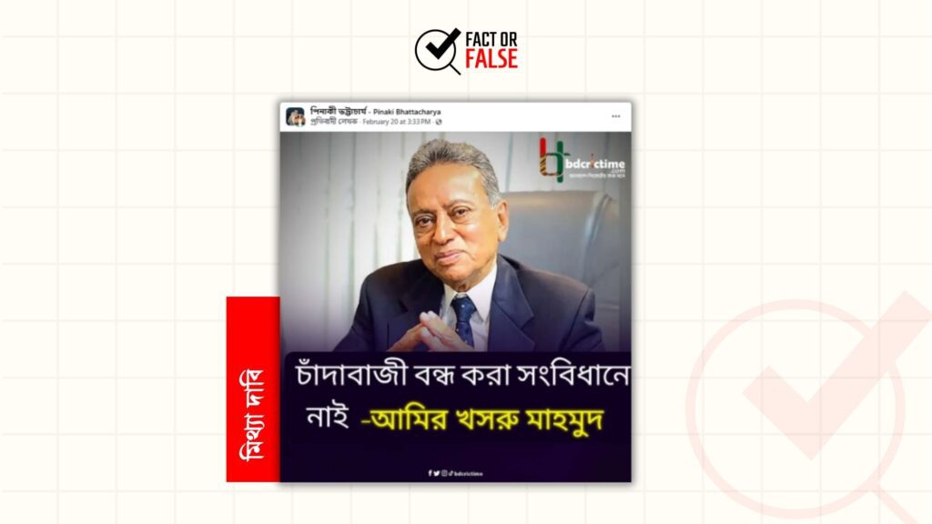 সম্প্রতি, “বাংলাদেশে মুসলমানদের জন্য পাঁচ ওয়াক্ত নামাজ বাধ্যমূলক করতে চাই” শীর্ষক মন্তব্য প্রধানমন্ত্রী তারেক রহমান করেছেন দাবিতে একটি…