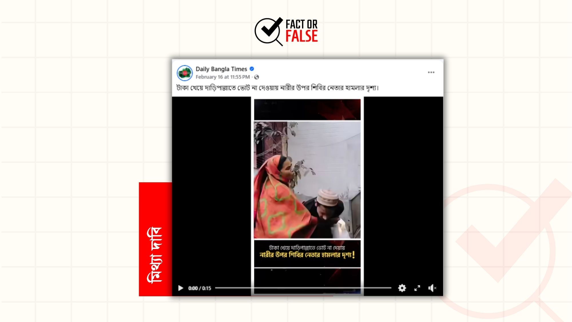 সম্প্রতি, “টাকা খেয়ে দাড়িপাল্লাতে ভোট না দেওয়ায় নারীর উপর শিবির নেতার হামলার দৃশ্য” শিরোনামে একটি ভিডিও সামাজিক যোগাযোগ মাধ্যমে প্রচার
