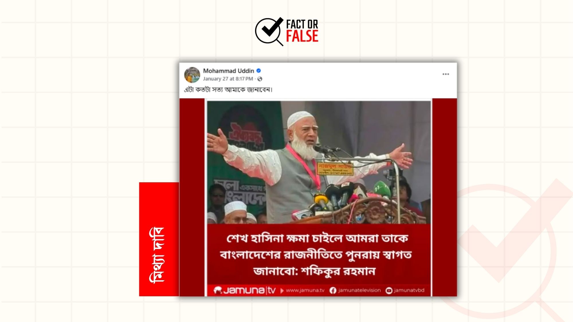 সম্প্রতি, “শেখ হাসিনা ক্ষমা চাইলে আমরা তাকে বাংলাদেশের রাজনীতিতে পুনরায় স্বাগত জানাবো: শফিকুর রহমান” শিরোনামে মূলধারার গণমাধ্যম যমুনা…