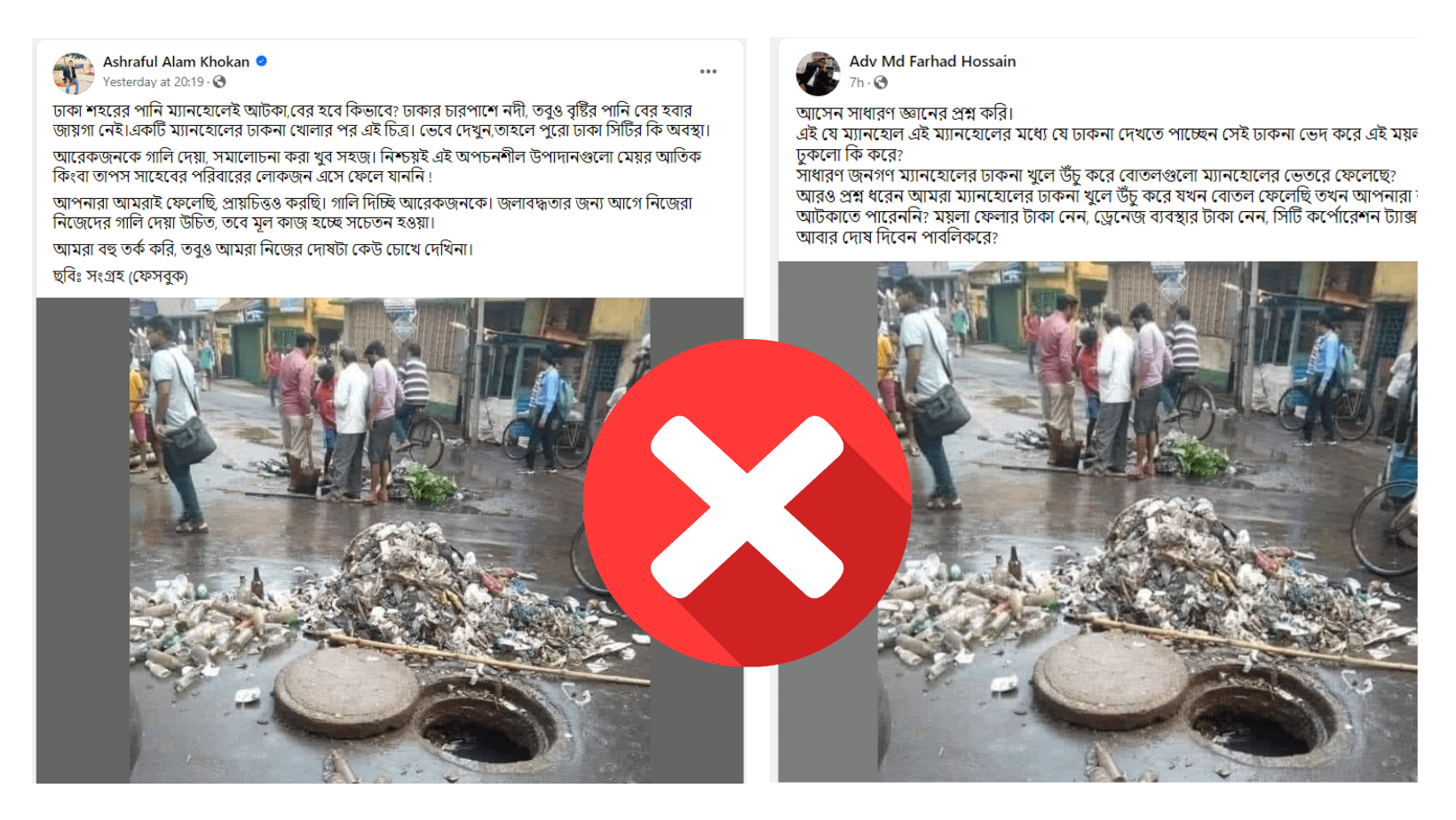 প্রধানমন্ত্রীর সাবেক উপ প্রেস সচিব আশরাফুল আলম খোকনসহ একাধিক সরকার দলীয় নেতাকর্মীরা ম্যানহোল থেকে আবর্জনা বের করার একটি ছবি ফেসবুকে প্রকাশ করে দাবি করেছেন, ছবিটি বাংলাদেশের। এই ছবি সংযুক্ত করা ফেসবুক পোস্ট এখানে, এখানে, এখানে দেখুন।