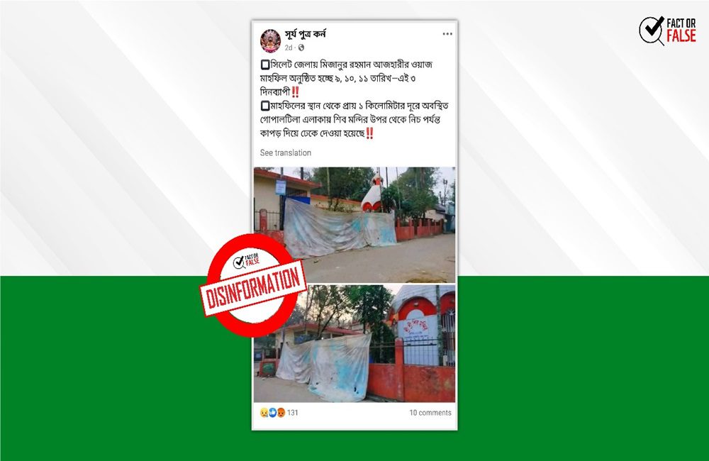 সিলেটে আজহারীর মাহফিল উপলক্ষে মন্দির ঢেকে দেয়ার মিথ্যা দাবি ভাইরাল