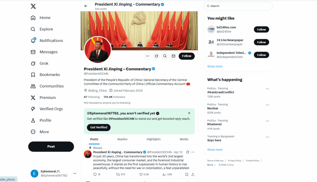 নকল এক্স একাউন্টের বরাতে শি জিনপিংয়ের নামে ভুয়া মন্তব্য ভাইরাল