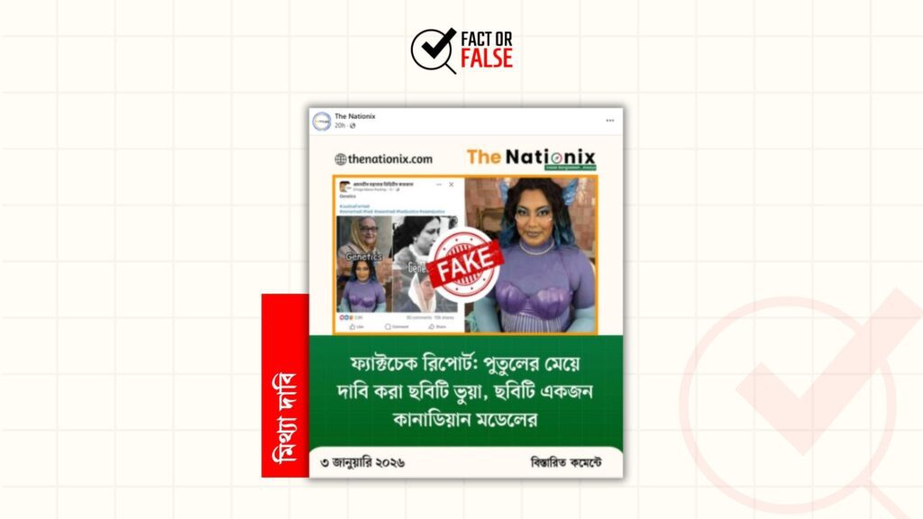 ফ্যাক্ট অর ফলস টিমের যাচাইয়ে দেখা যায়, তারেক কন্যা জায়মা রহমানের নামে এটি একটি ফেইক পেজ। পেজটিতে Primary country location অপশন এ দেখা যায় পেজটি বাংলাদেশ থেকে পরিচালিত। অথচ তারেক কন্যা জায়মা রহমান বর্তমানে লন্ডনে অবস্থান করছেন।