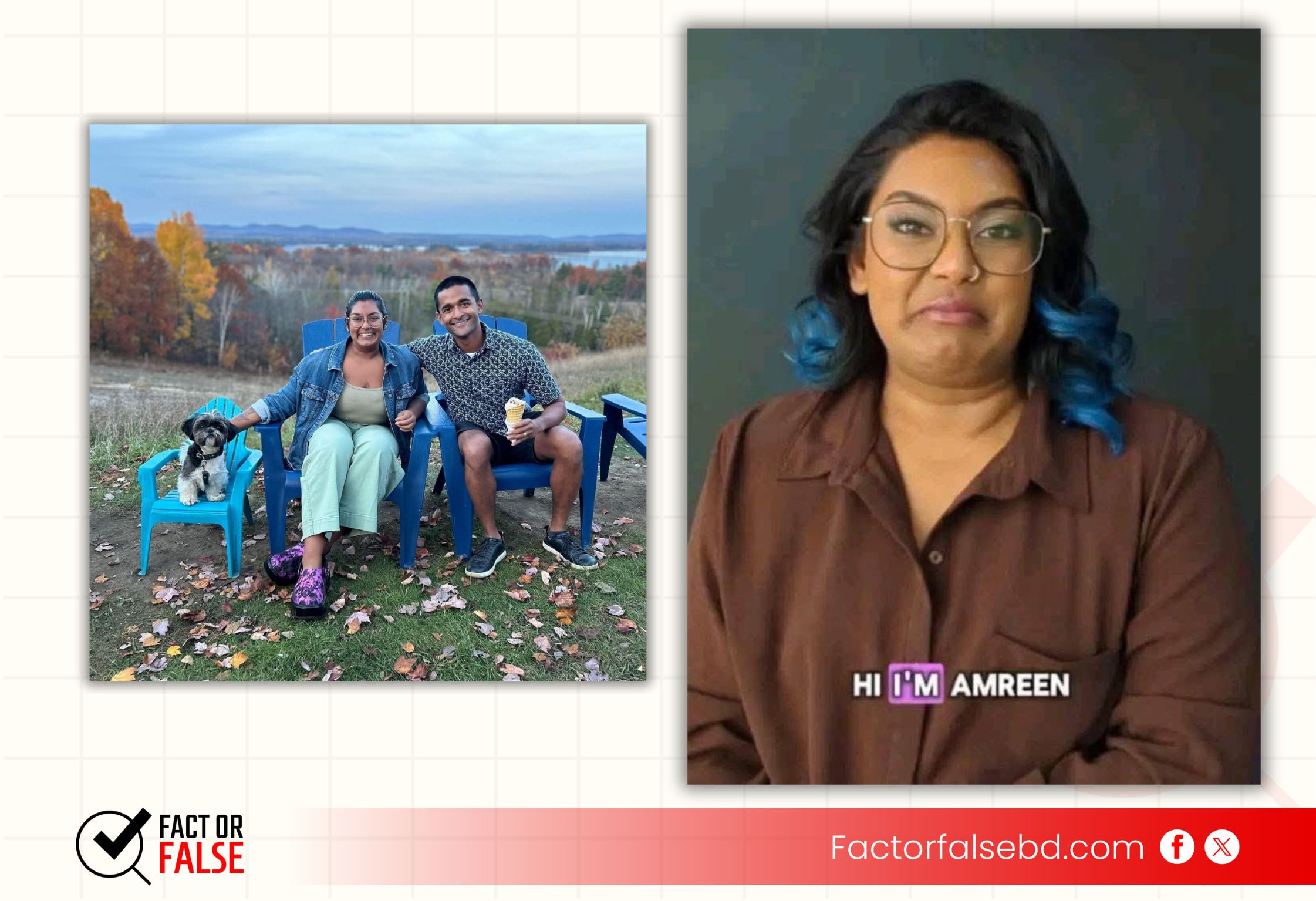 ফ্যাক্ট অর ফলস এর যাচাইয়ে জানা যায়, ছবিটি শেখ পরিবারের নাতনি সায়মা ওয়াজেদ পুতুলের বড় কন্যা আমরিন খন্দকার সেমন্তীর। যিনি বর্তমানে কেরালা বংশোদ্ভূত এক খ্রিস্টান পরিবারের পুত্রবধু। তার বর্তমান নাম Rain Koduvath (রেইন কদুভাথ)। তার স্বামীর নাম Nikhil George Koduvath (নিখিল জর্জ কদুভাথ)।