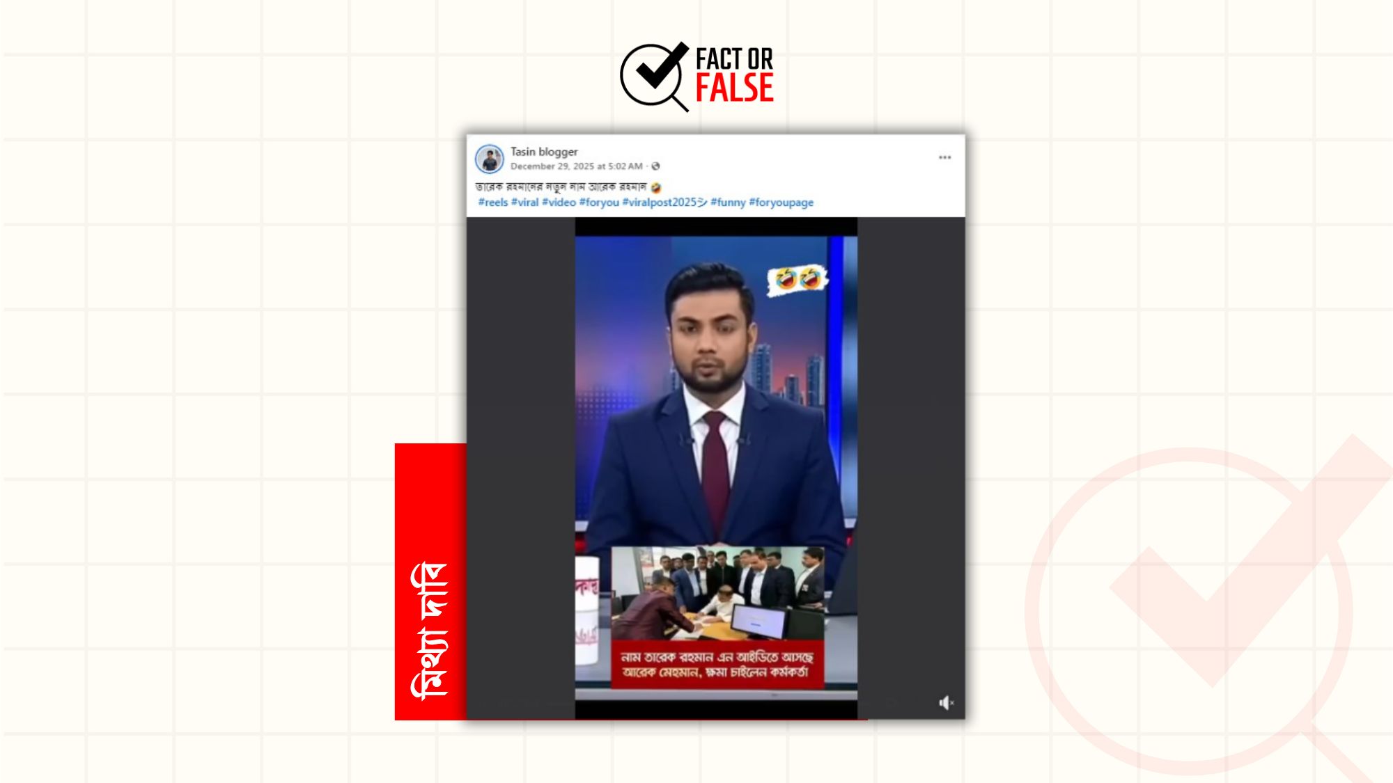 ছড়িয়ে পড়া ভিডিওটিতে সংবাদ উপস্থাপনের আদলে বলা হচ্ছে, তারেক রহমানের এনআইডি তে নাম এসেছে আরেক মেহমান, অভিযোগ জানাতে অফিসে তারেক রহমান এবং ক্ষোভ প্রকাশ। ক্ষমা চাইলেন কর্মকর্তা, দ্রুত সঠিক করে দেওয়ার প্রস্তুতি। স্ক্রিনে ভিডিওটিতে একজন পুরুষ বিষয়টি উপস্থাপন করছেন এবং নীচের অংশে তারেক রহমানের ছবিসহ একটি ফটোকার্ড যুক্ত করা হয়েছে।
