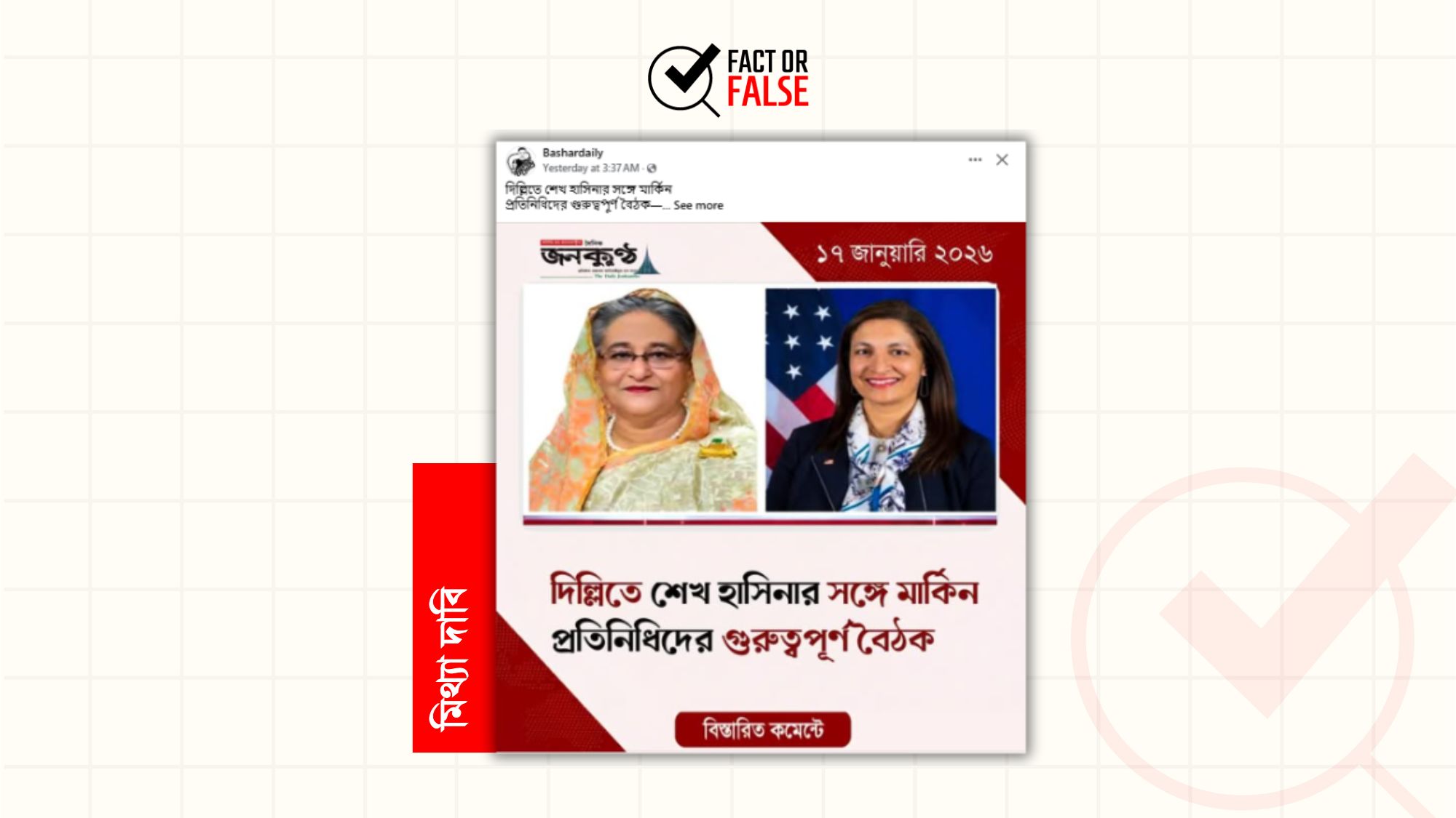 দিল্লিতে শেখ হাসিনার সঙ্গে মার্কিন প্রতিনিধিদের বৈঠক দাবিতে ভুয়া ফটোকার্ড প্রচার