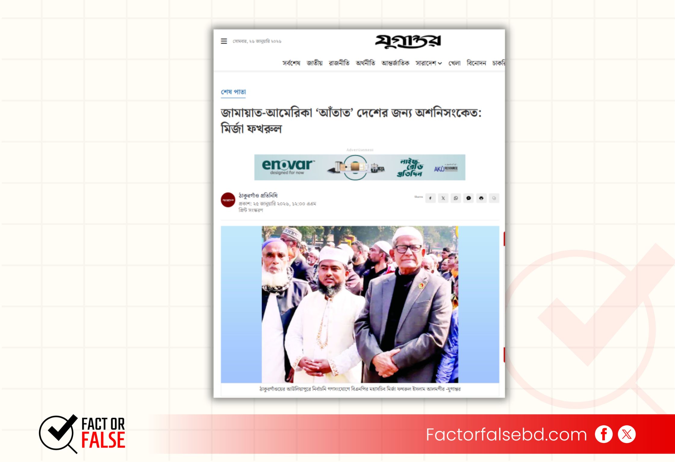 “জামায়াতকে ক্ষমতায় বসানোর জন্য যুক্তরাষ্ট্র ষড়যন্ত্র করছে” বিএনপি মহাসচিব মির্জা ফখরুল ইসলাম এমন কথা বলেছেন দাবি করে একটি ফটোকার্ড সামাজিক যোগাযোগ মাধ্যমে ছড়ানো হয়েছে।