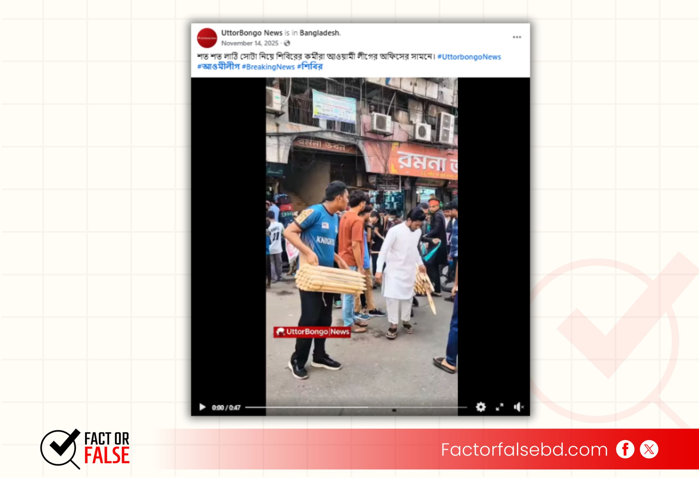 সুতরাং, সাম্প্রতিক সময়ে জামায়াত-শিবিরের লাঠিসোঁটা নিয়ে নির্বাচনী প্রস্তুতি দাবিতে গত বছরের নভেম্বরে আওয়ামী লীগের কেন্দ্রীয় কার্যালয়ের সামনে শিবিরের অবস্থানের ভিডিও প্রচার করা হয়েছে; যা বিভ্রান্তিকর।