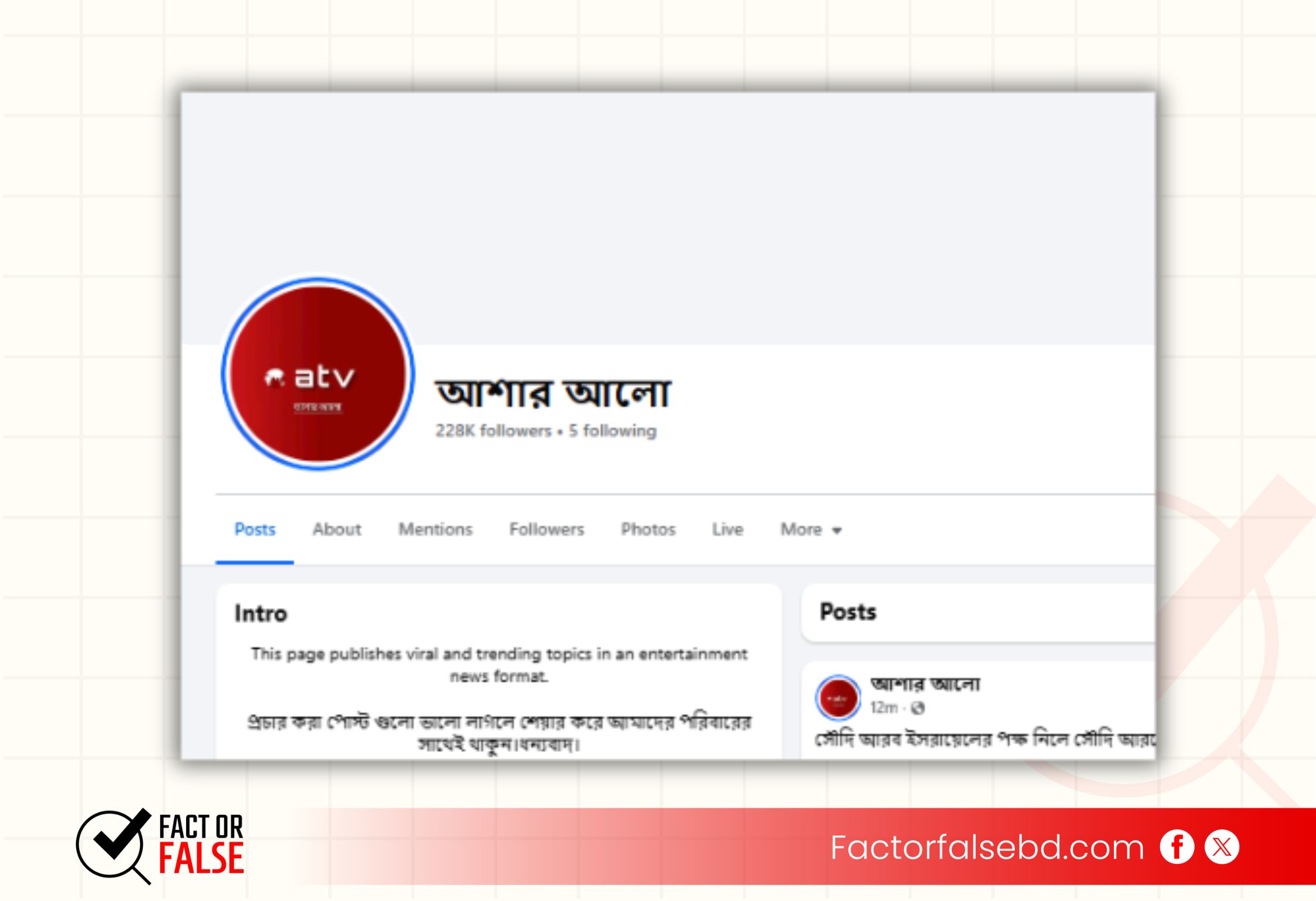‘আশার আলো’ পেজের বায়োতে উল্লেখ রয়েছে, ‘ভাইরাল এবং ট্রেন্ডিং বিষয়গুলি এই পেজে বিনোদনমূলক সংবাদ আকারে প্রকাশ করা হয়।’